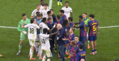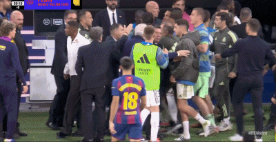 第90+10分钟,比赛最后时刻,佩德里两黄变一红下场,随后两队发生激烈冲突