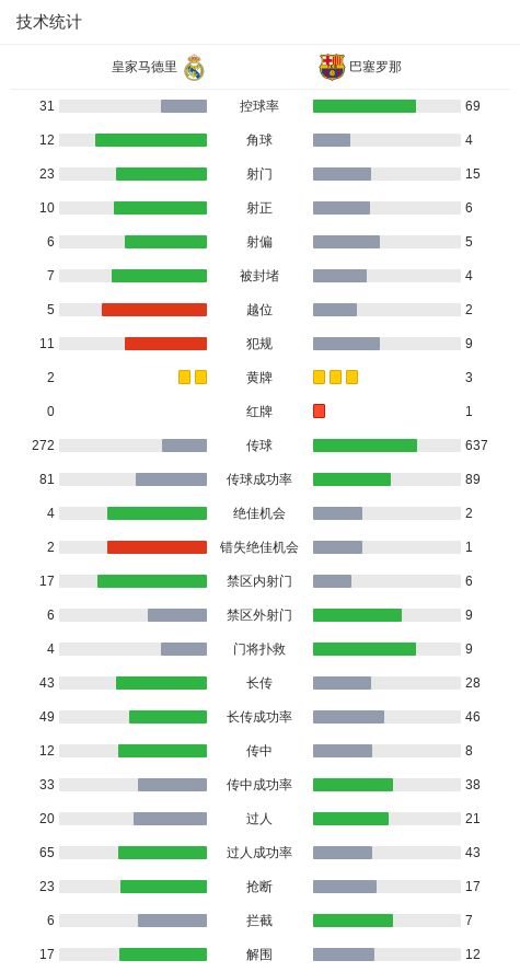 北京时间10月26日,西班牙足球甲级联赛第10轮展开较量,皇家马德里主场迎战巴塞罗那。上半场,姆巴佩世界波破门被判越位进球无效,贝林厄姆助攻姆巴佩单刀破门,拉什福德助攻费尔明劲射入网,米利唐头球助攻贝林厄姆推空门得手,姆巴佩再次越位进球被吹;下半场,加西亚送点后姆巴佩主罚被什琴斯尼扑出,贝林厄姆同样进球被吹越位无效,补时阶段佩德里两黄变一红被罚下。最终全场比分定格为皇家马德里2-1巴塞罗那。