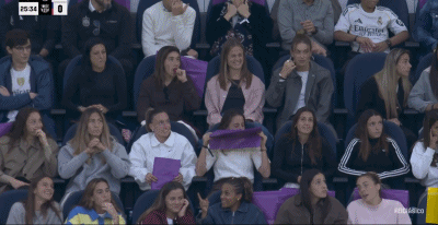 为男足加油,镜头给到现场看球的巴萨女足球员