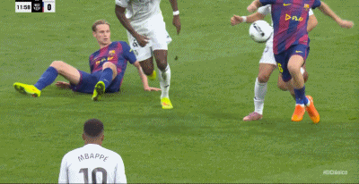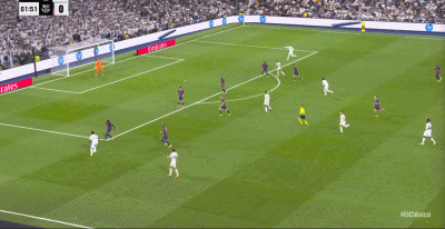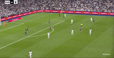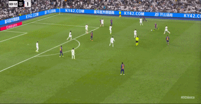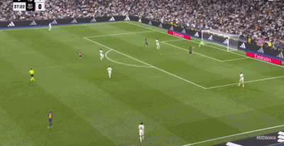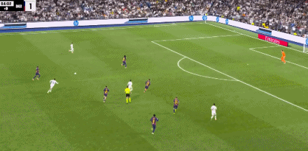 第22分钟,贝林厄姆摆脱后直塞,姆巴佩绝影单刀破门,皇马1-0巴萨!