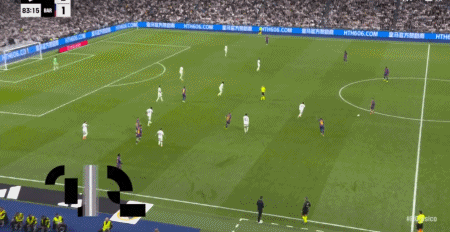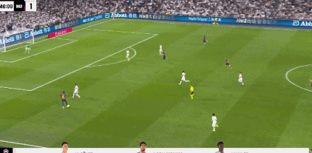 第43分钟,米利唐头球助攻,贝林厄姆推射空门得手,皇马2-1巴萨!