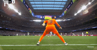 第90+8分钟,罗德里戈任意球射门,皮球被扑出