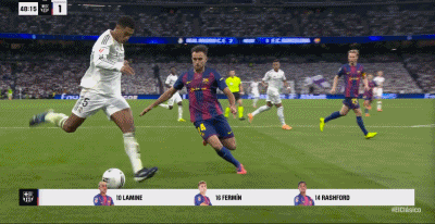 第38分钟,居莱尔后场被断,拉什福德助攻费尔明破门,巴萨1-1皇马!